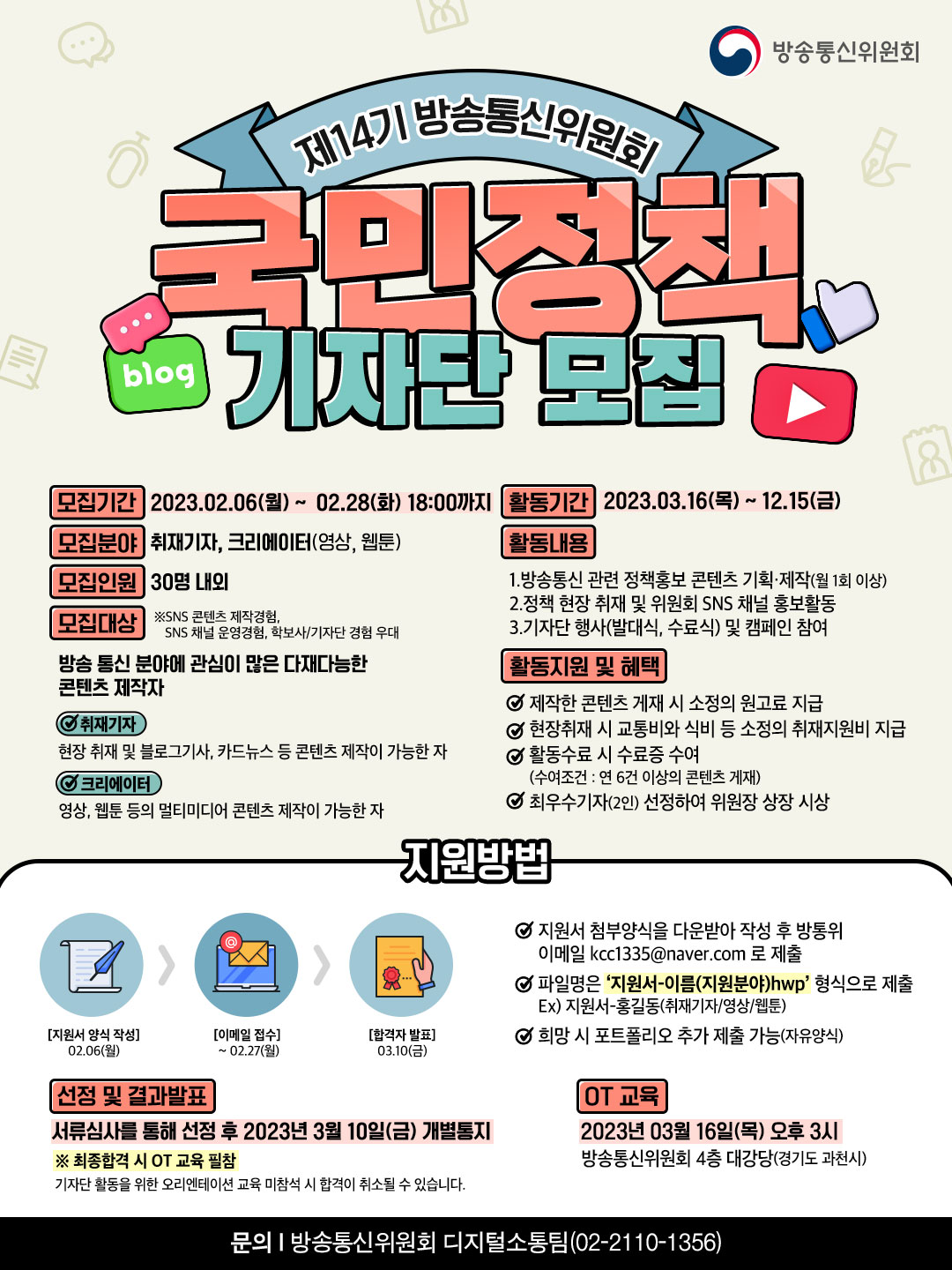 "방송통신위원회"가 '제14기 국민정책기자단'을 모집합니다🎬❤️