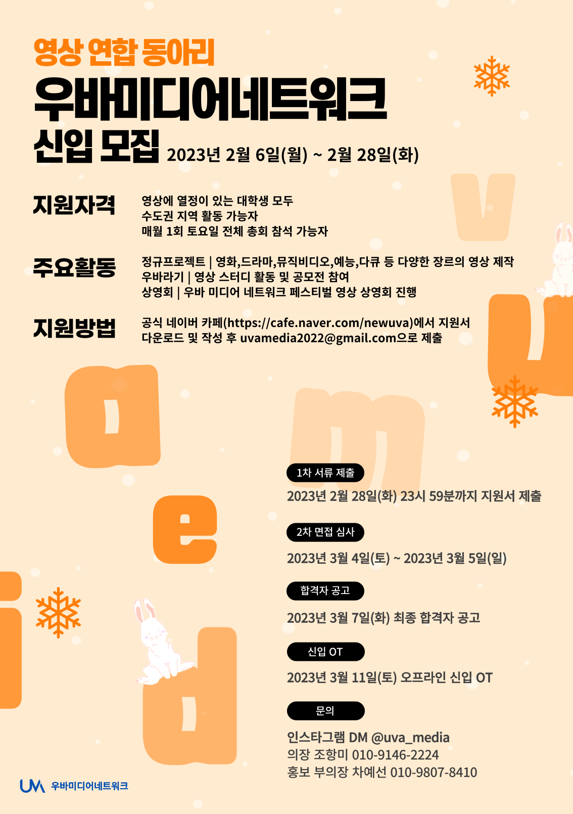 🎥 연합 영상동아리 우바미디어네트워크 21기 신입회원 모집 \~2/28 🎥