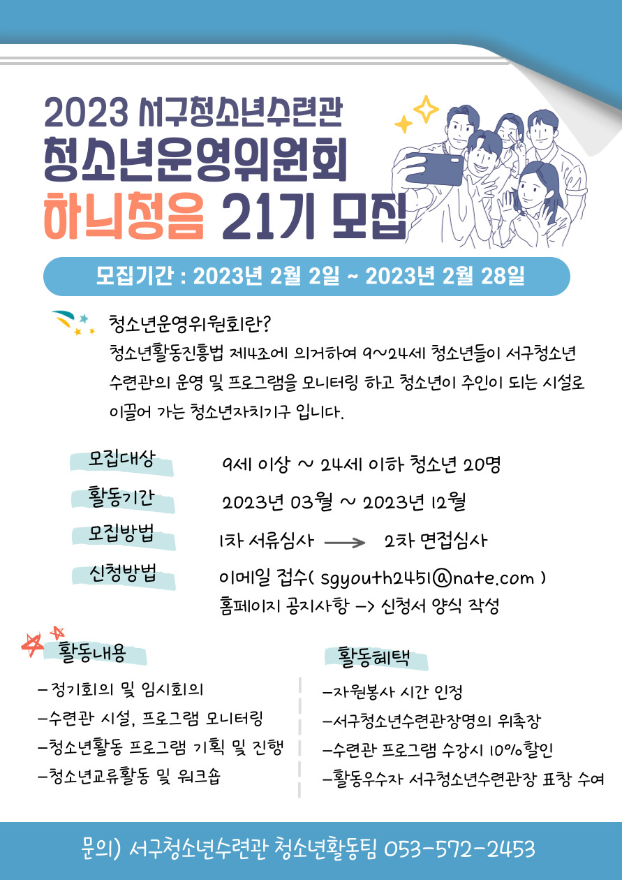 서구청소년수련관 청소년운영위원회 하늬청음 21기 모집!