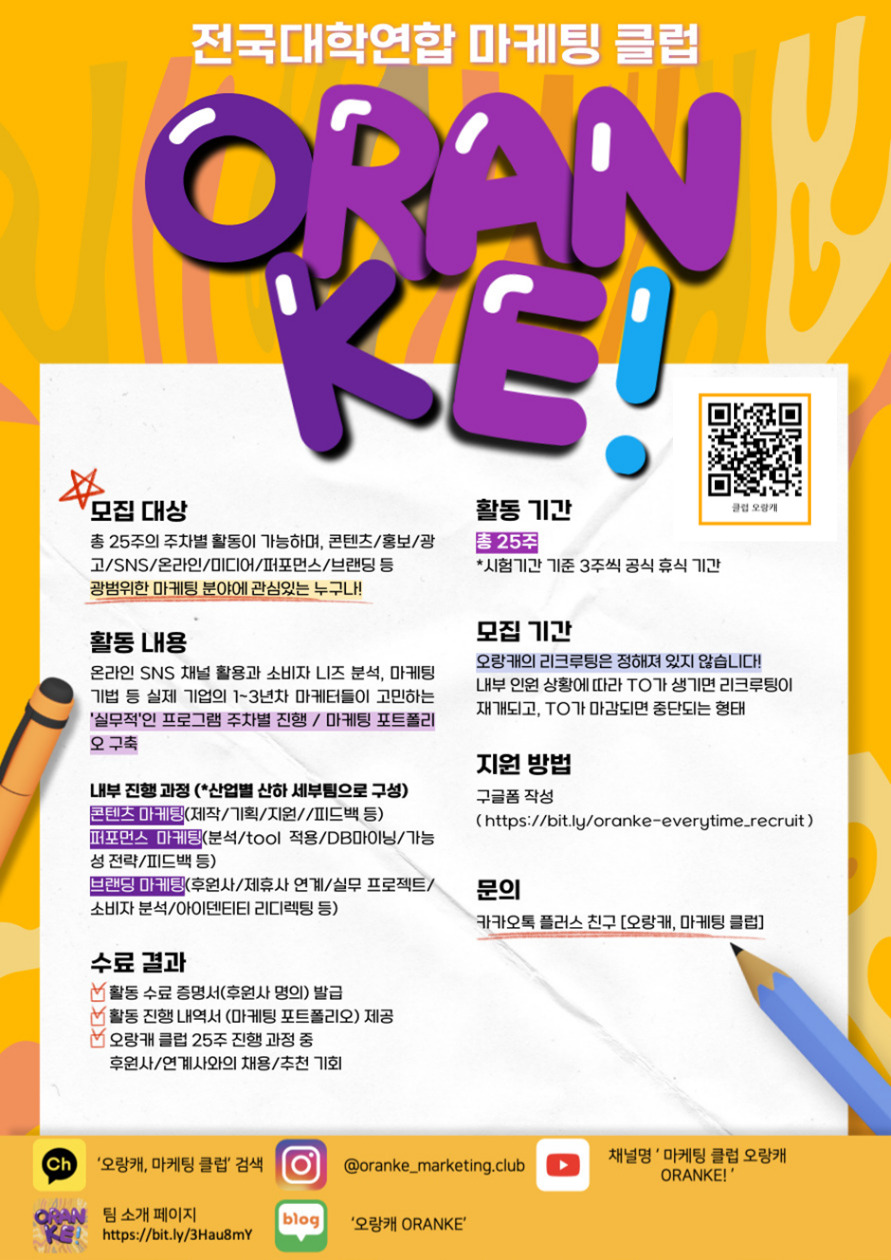 ▶ 지원서 링크 ☞ https://bit.ly/oranke-everytime_recruit