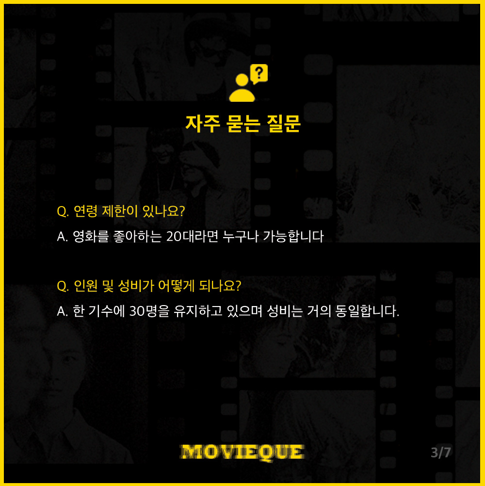 1. 연령 제한 있나요? // 영화를 좋아하는 20대라면 누구나 가능합니다
