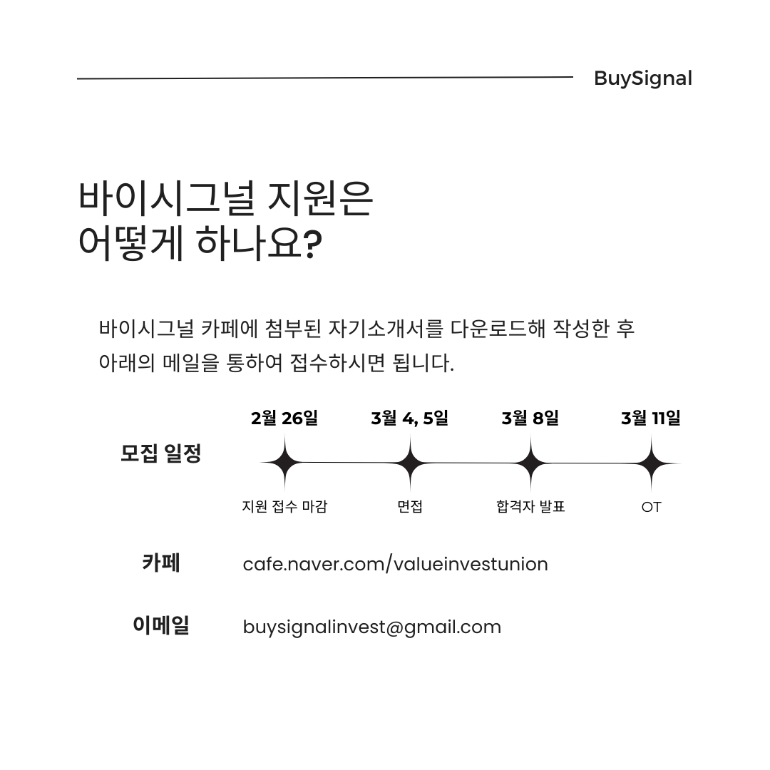 👉메일(buysignalinvest@gmail.com)으로 지원서를 보내주세요!