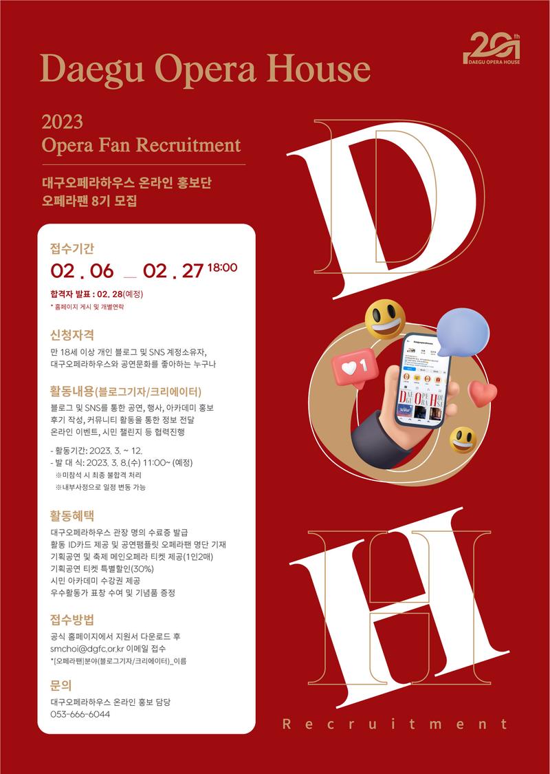 모집명 2023년 대구오페라하우스 온라인 홍보단 오페라팬 8기 모집