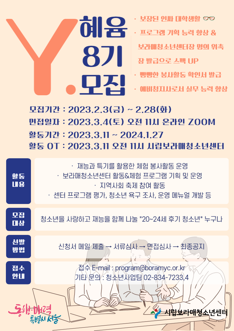 시립보라매청소년센터 'Y.혜윰' 활동을 할 후기 청소년들을 모집합니다.