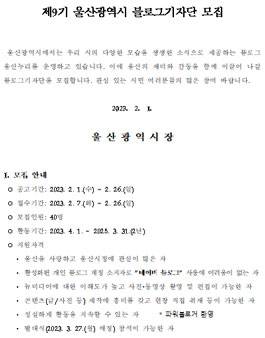 - 울산시 홍보자료 개인 미디어 전파\, 블로그 기자단데이 참여 등