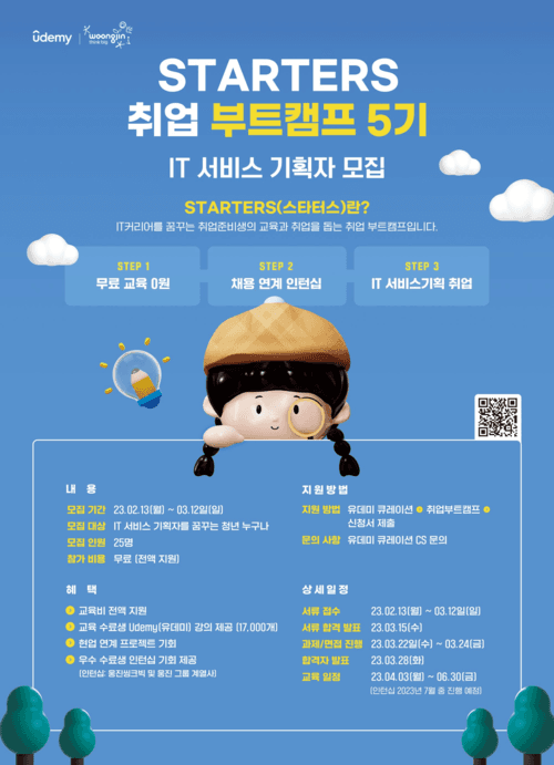 [유데미 x 웅진씽크빅] STARTERS(스타터스) 취업 부트캠프 5기 모집 – IT 서비스 기획(채용 연계형 인턴십) \~3.12 모집 마감