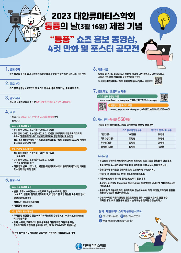 2023 대한류마티스학회 통풍 쇼츠 홍보 동영상, 4컷 만화 및 포스터 공모전