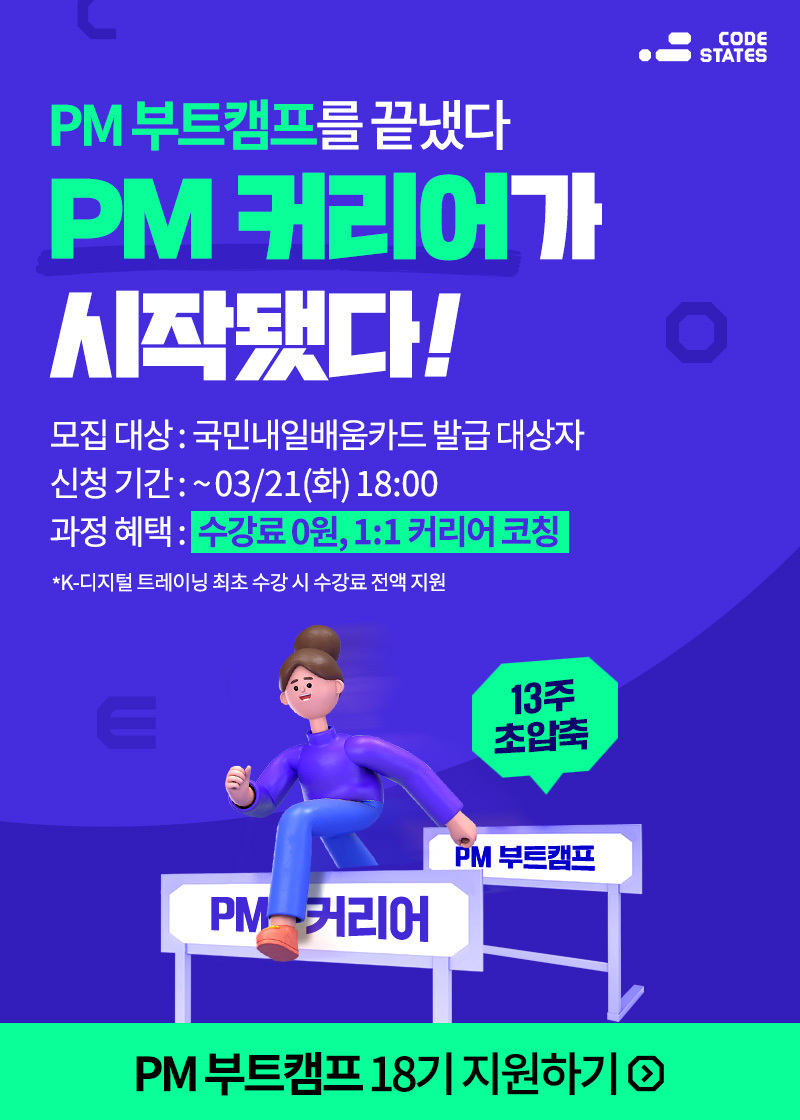 - PM으로 성장하기 위해 13주 동안 풀타임 교육 참여가 가능한 분 (온라인)