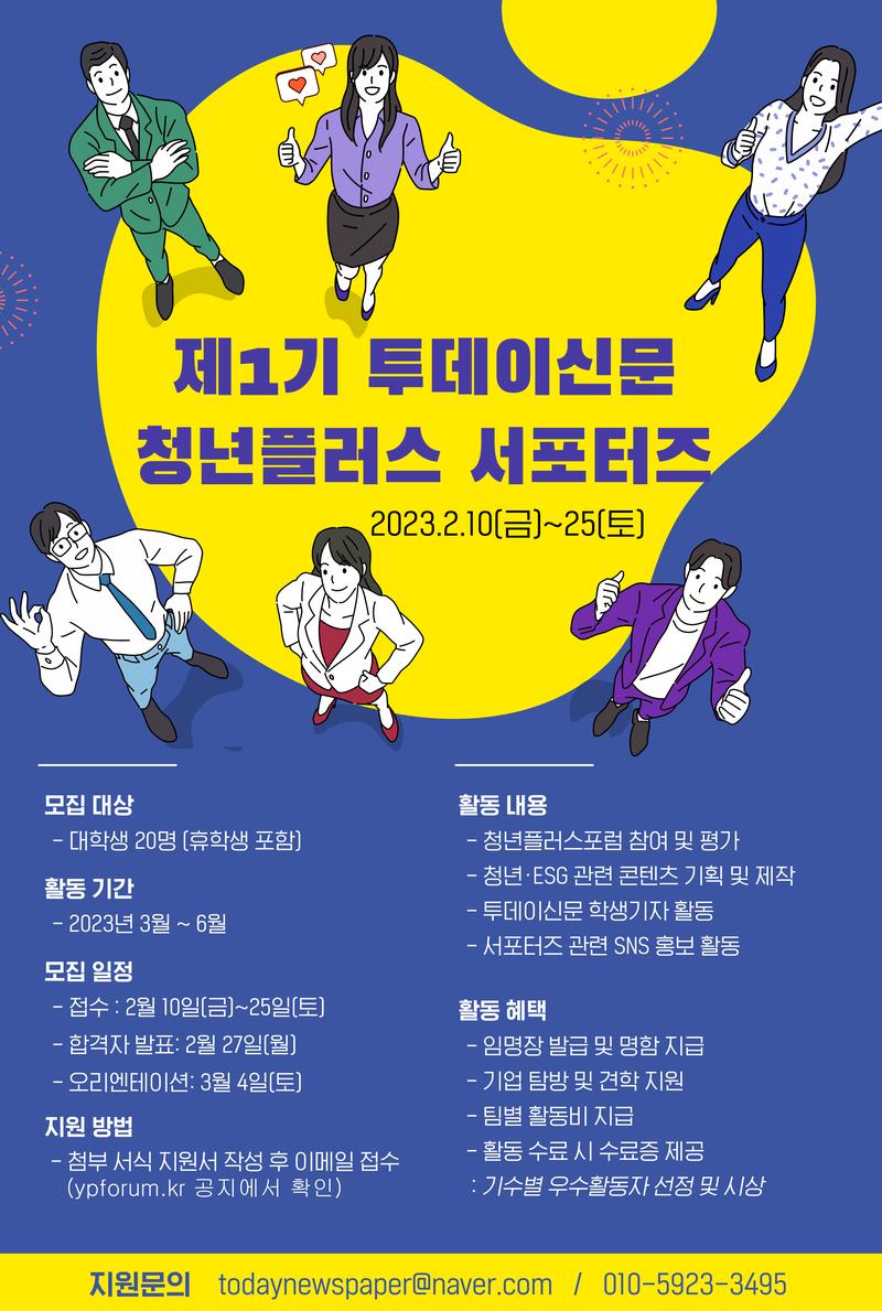 종합인터넷언론사 투데이신문에서 ‘제1기 청년플러스 서포터즈’를 모집합니다.
