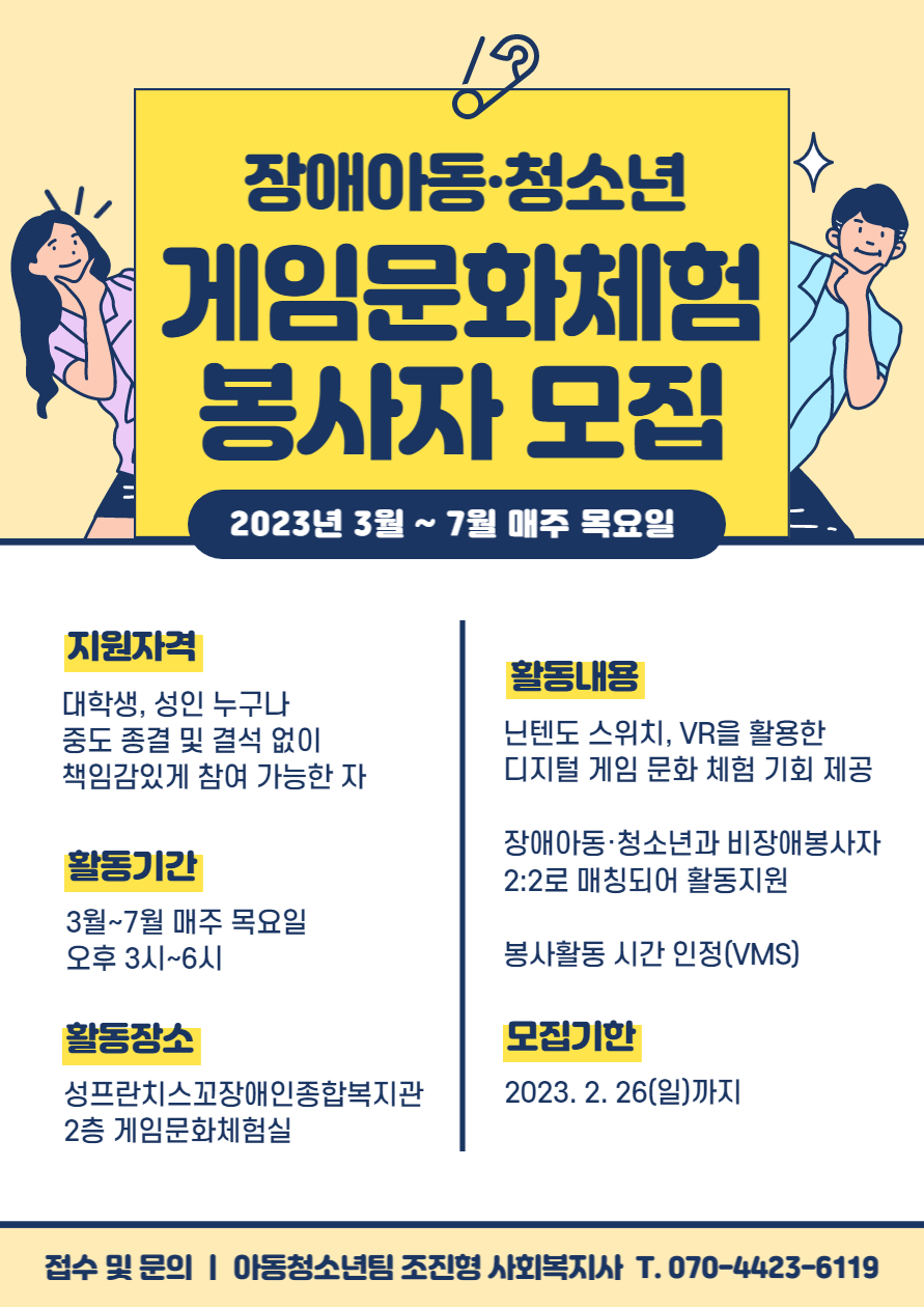 장애 아동·청소년 친구들과 게임문화체험 활동을 함께 해주실 자원봉사자를 모집합니다!