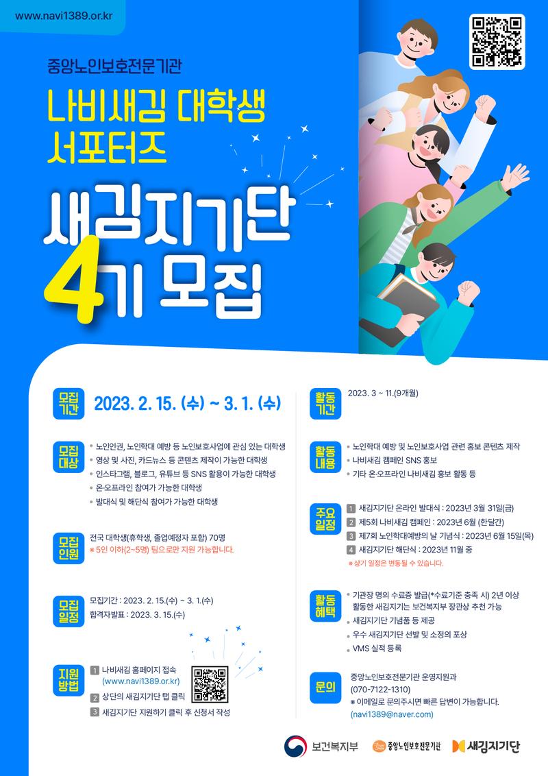 ▶ 모집일정 - 모집 기간: 2023. 2. 15. (수) \~ 3. 1. (수) - 합격자 발표: 2023. 3. 15. (수)