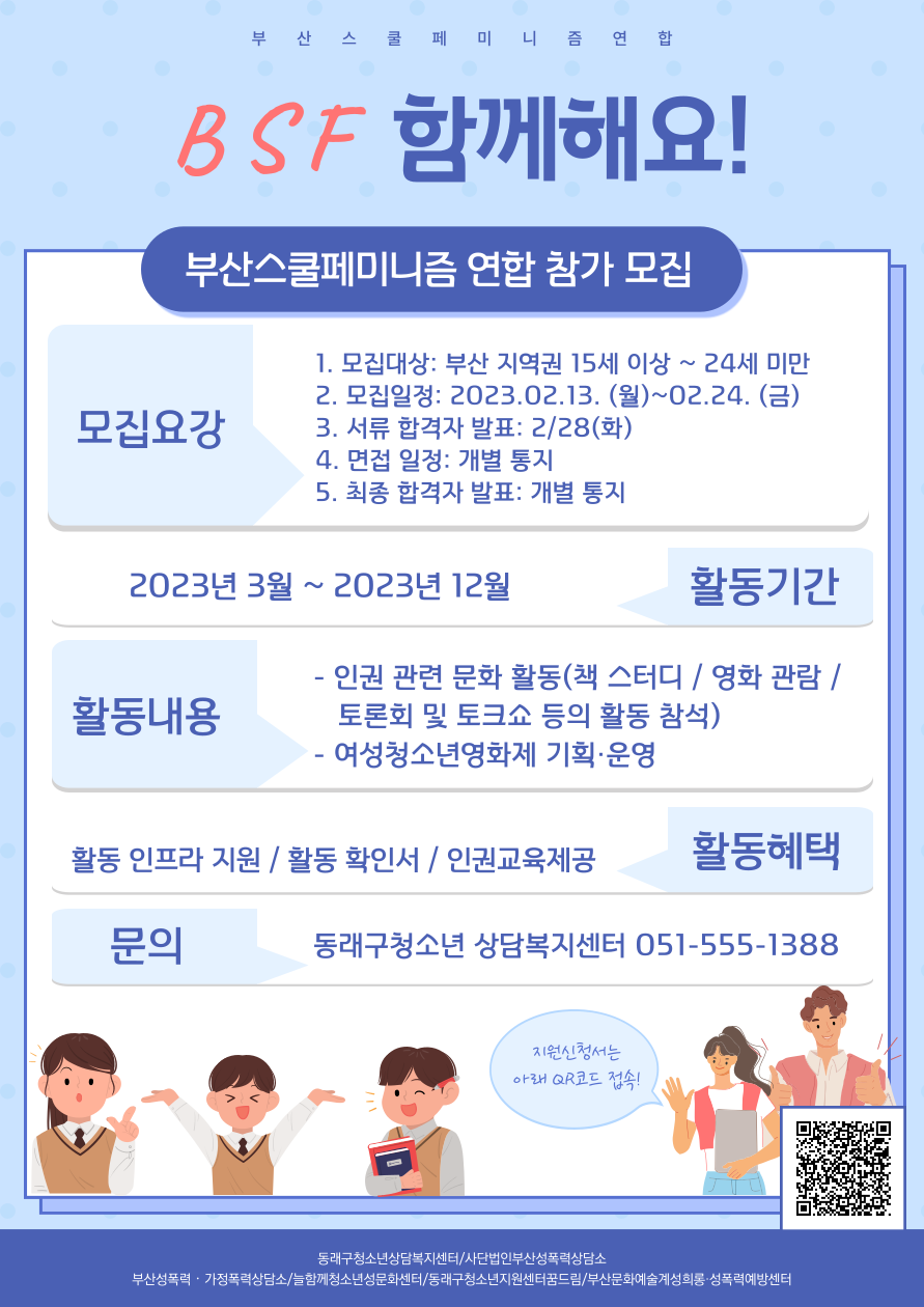 동래구청소년상담복지센터 2023년 부산스쿨페미니즘연합 구성원 모집
