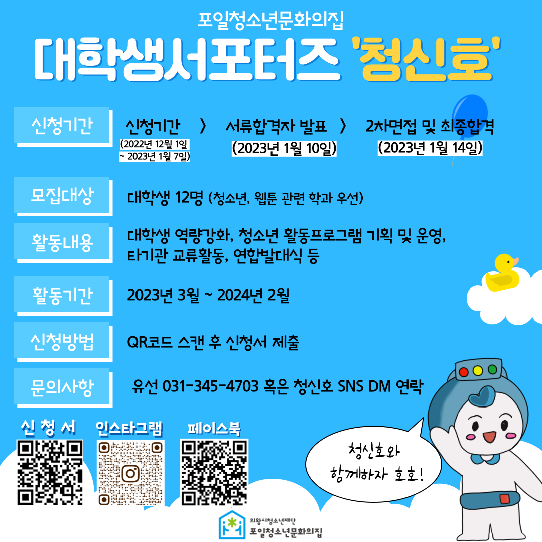 포일청소년문화의집 대학생서포터즈 청신호 2기 모집