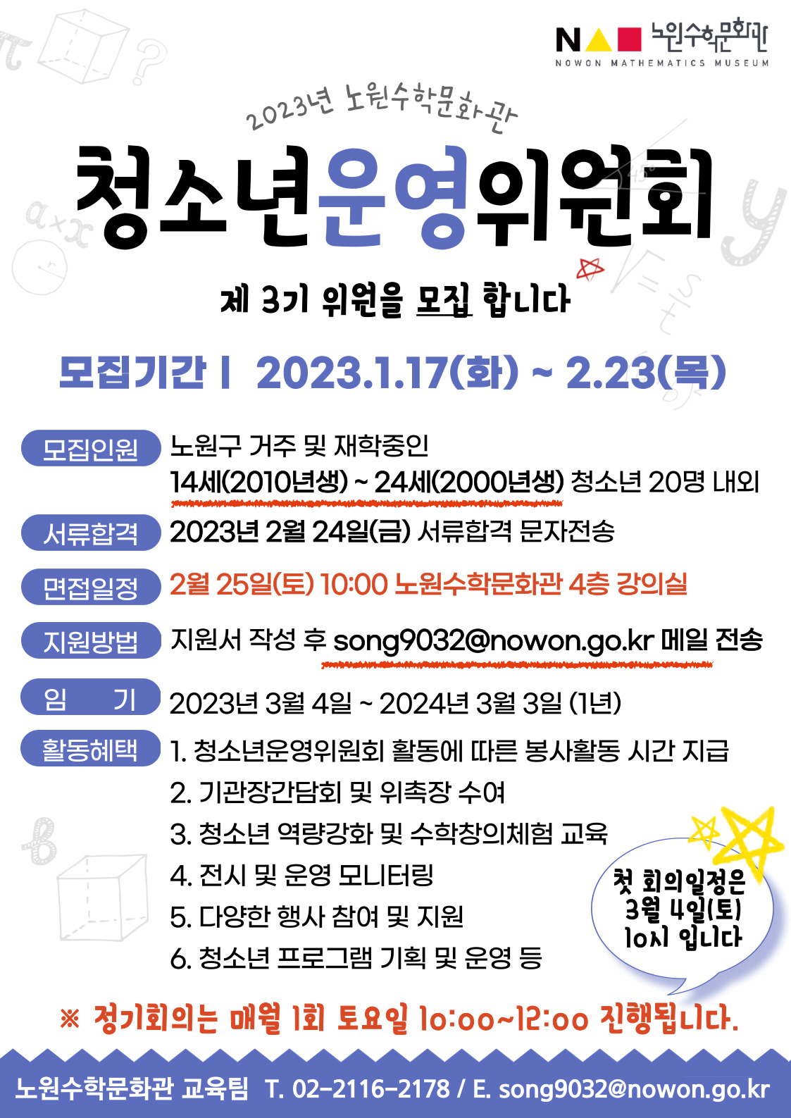 노원수학문화관 2023 청소년운영위원회 이꼴 3기 모집