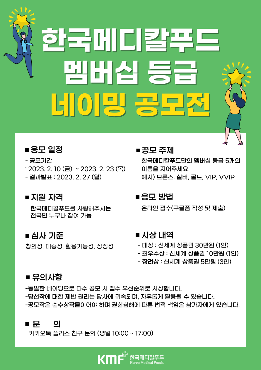 한국메디칼푸드만의 특별한 멤버십 등급 이름을 지어주세요 : )
