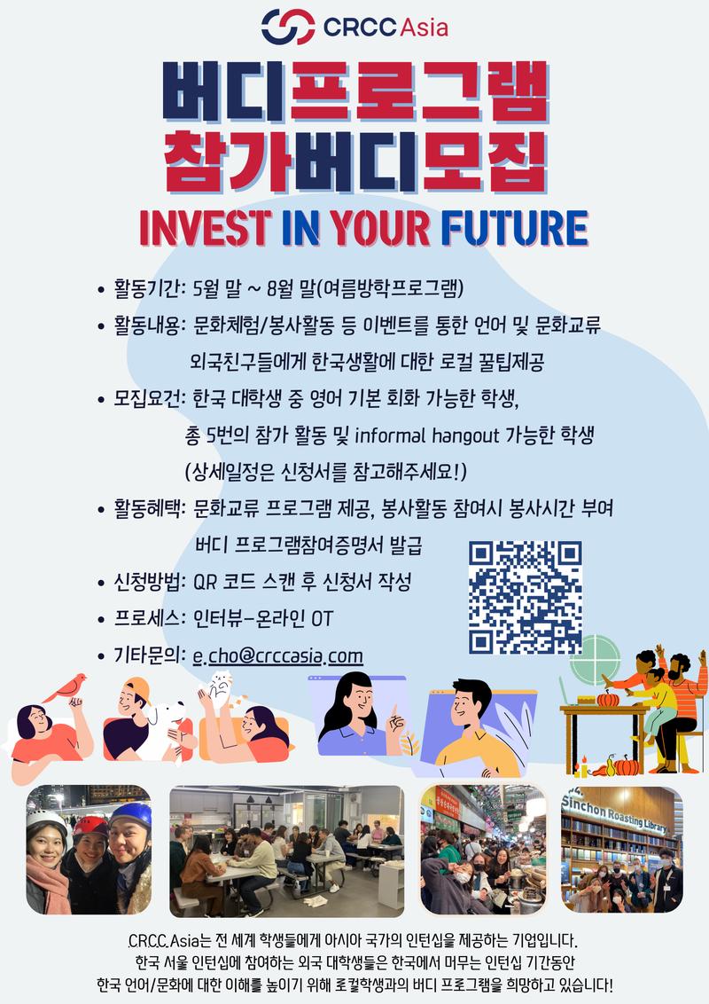 그들에게 한국 문화를 소개해주고 좋은 친구가 되어줄 버디를 모집합니다!