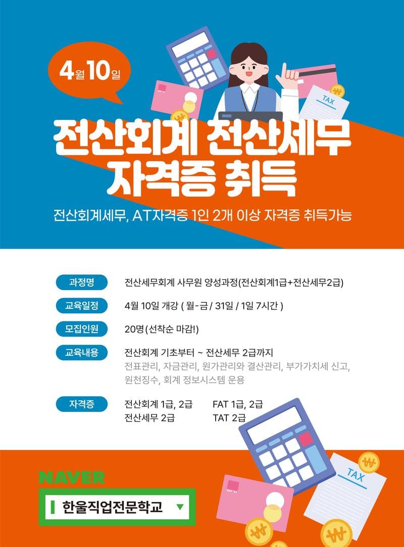 전산세무회계 사무원 양성과정(전산회계1급+전산세무2급)