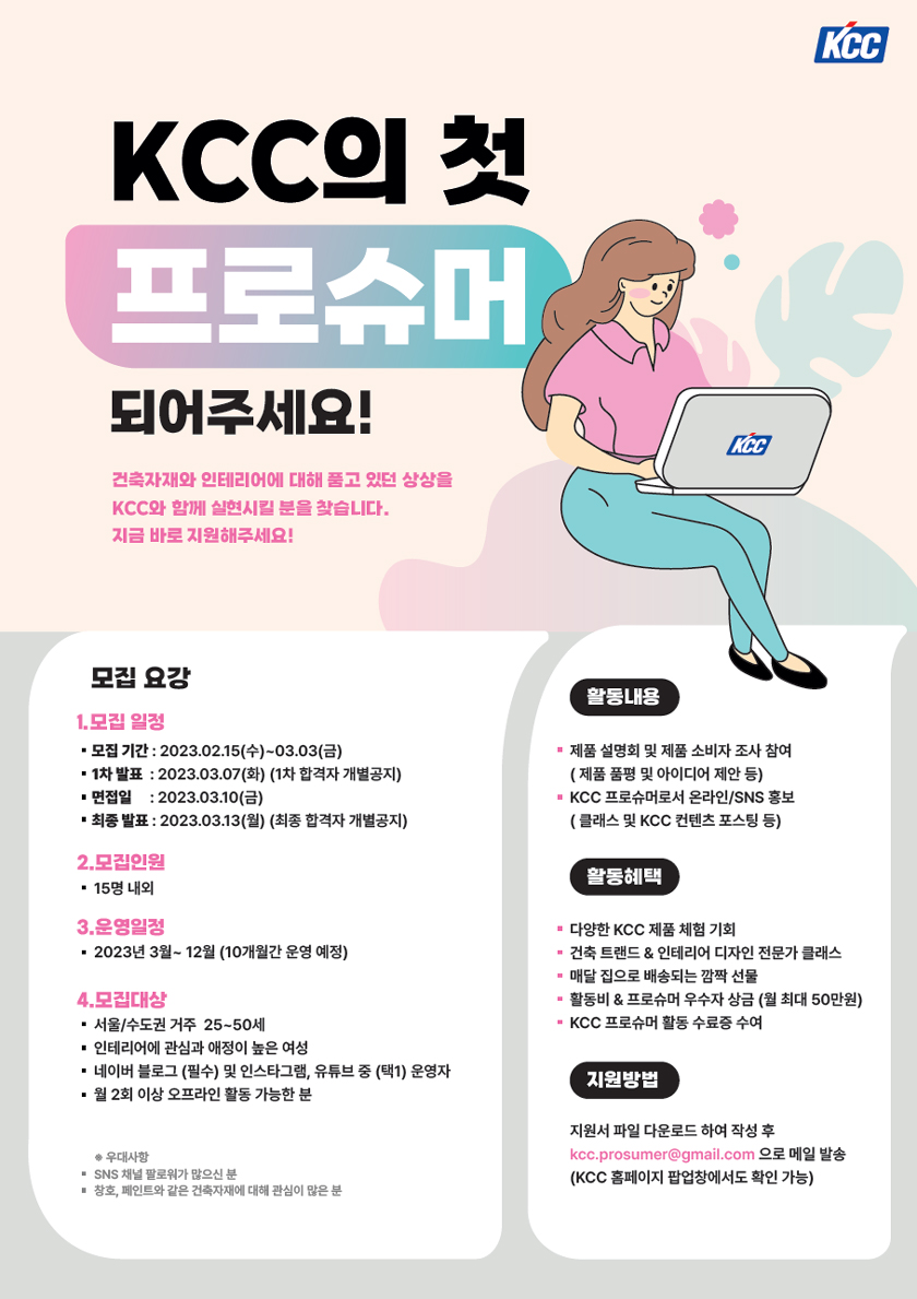 KCC의 첫 프로슈머가 되어주세요 - 2023 KCC 프로슈머 모집