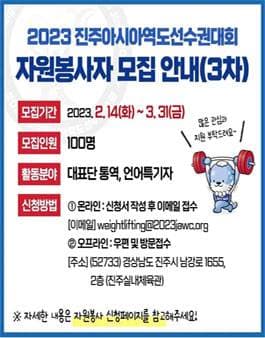 2023 진주아시아역도선수권대회 통역자원봉사자 모집 (3차)