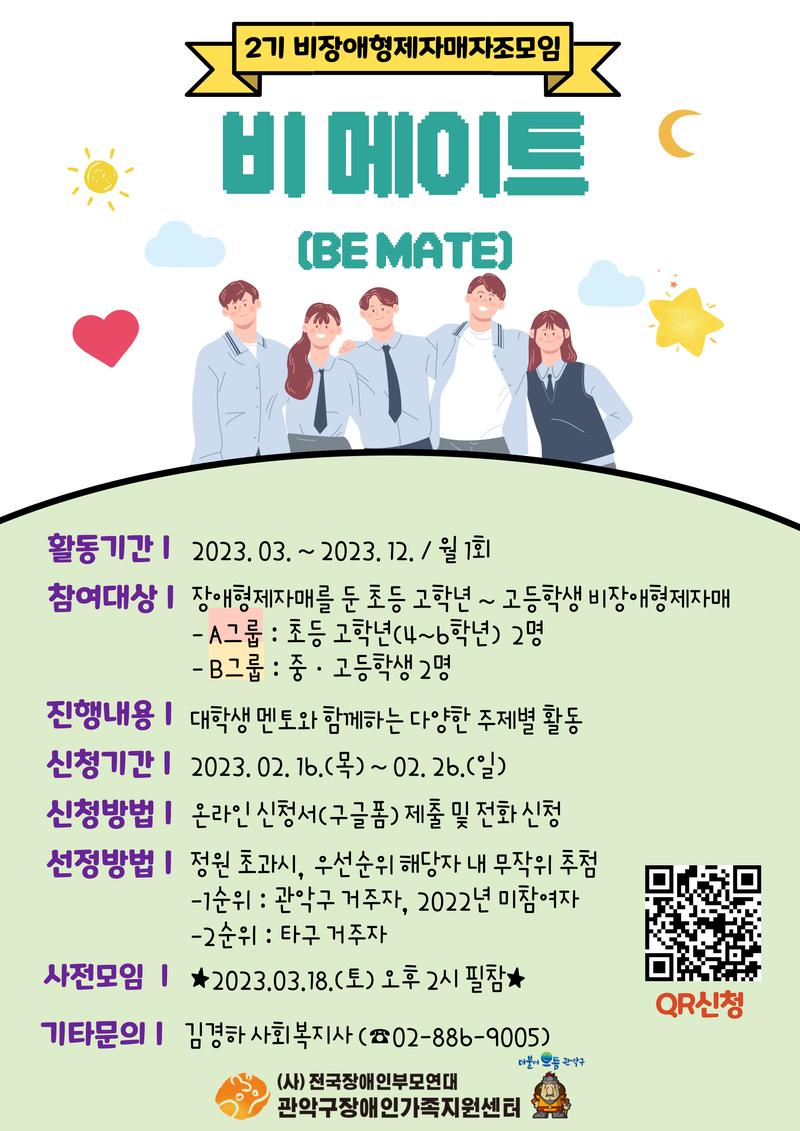 관악구장애인가족지원센터 2023년 비장애형제자매 자조모임 대학생 멘토 모집