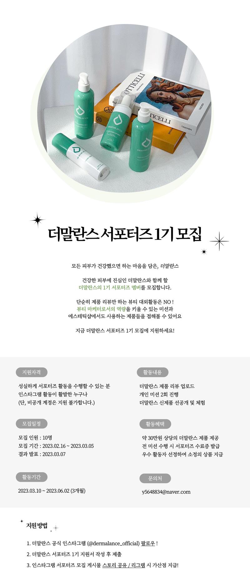 서포터즈 지원 : 네이버 폼 (naver.com) 더말란스 공식 인스타그램 : www.instagram.com/dermalance.official/