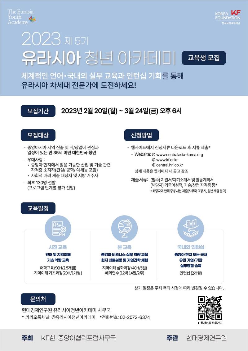 o 문의: 유라시아 청년 아카데미 사무국 (카카오톡채널: @유라시아청년아카데미 / 유선전화: 02-2072-6374)