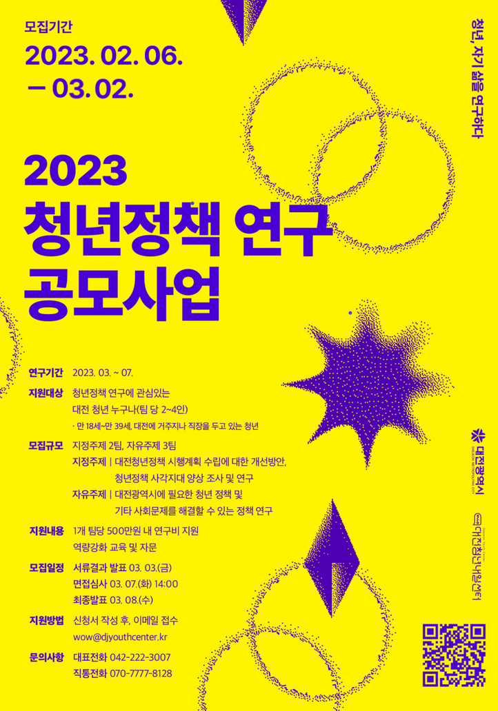✍🏻신청방법 대전청년포털 홈페이지 (daejeonyouthportal.kr)-대전청년내일센터-센터소식-2023년 청년정책 연구 공모사업 공고