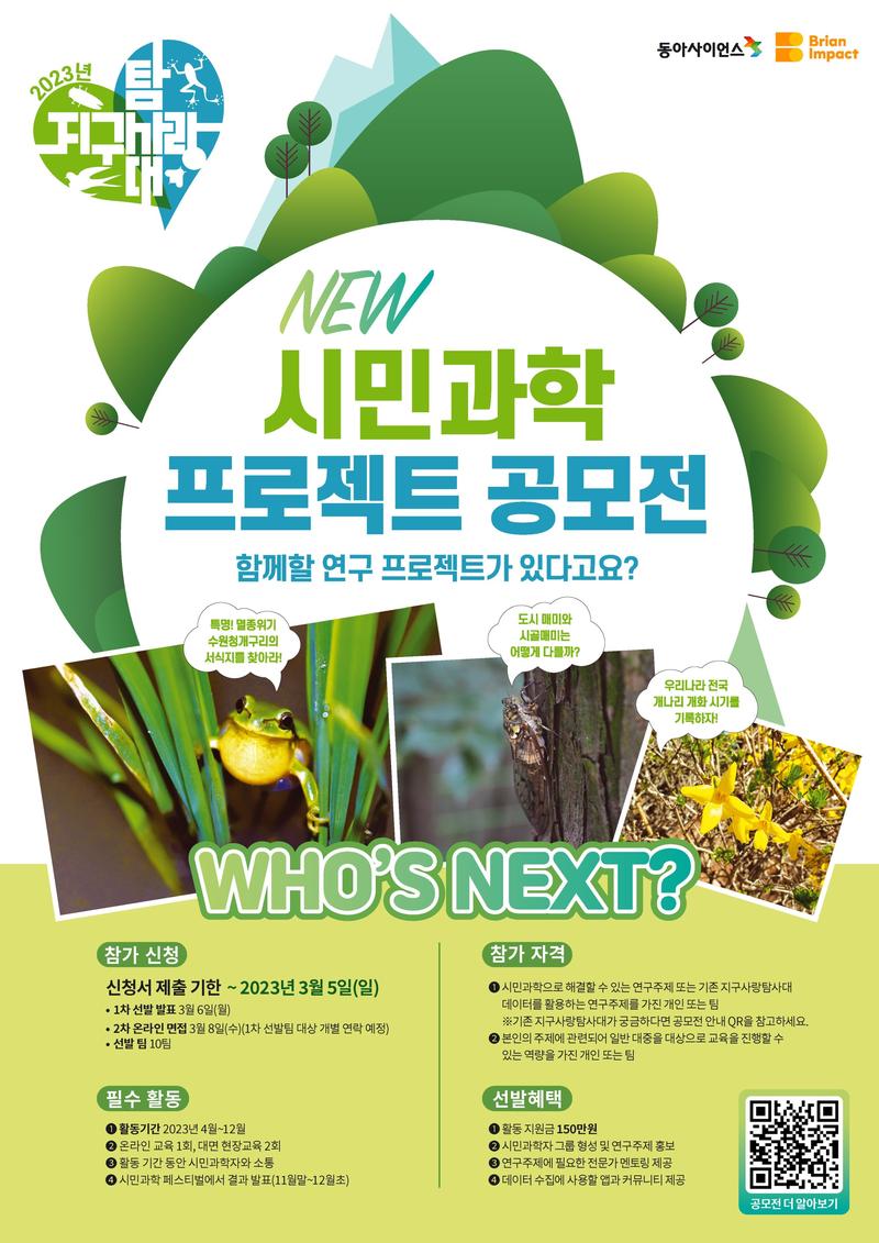 <지구사랑탐사대 시민과학 프로젝트 공모전 안내> 시민과학으로 해결할 수 있는 프로젝트 아이디어가 있다면? 지금 바로 공모하세요\~!