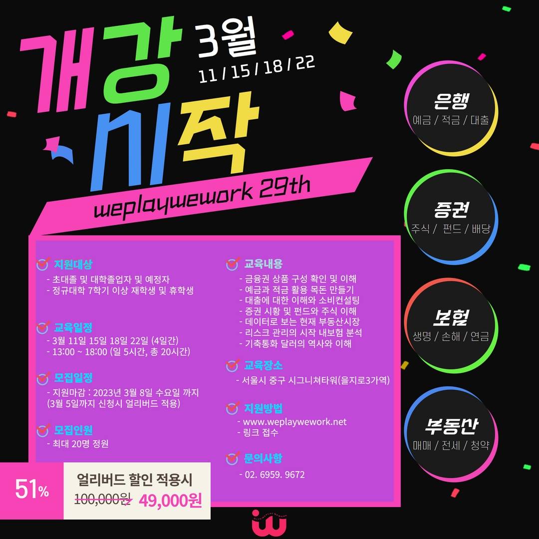 [WEPLAYWEWORK 29기] 개강시작! 23년 금융권 취업의 첫걸음을 같이해요😊