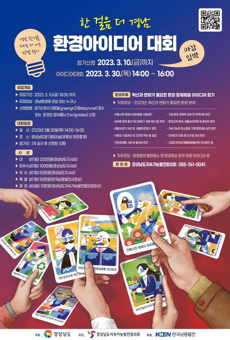 [문의처] : 경상남도 환경정책과(☎ 055-211-6614) 또는 경상남도지속가능발전협의회 사무처(☎ 055-761-0041)