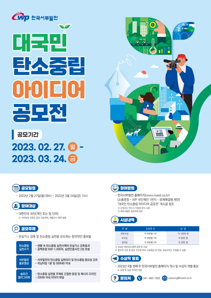 ※ 상기 연락처는 문의처로만 활용되며, 아이디어 제출은 한국서부발전 홈페이지의 지정된 게시판을 통해서만 인정됨