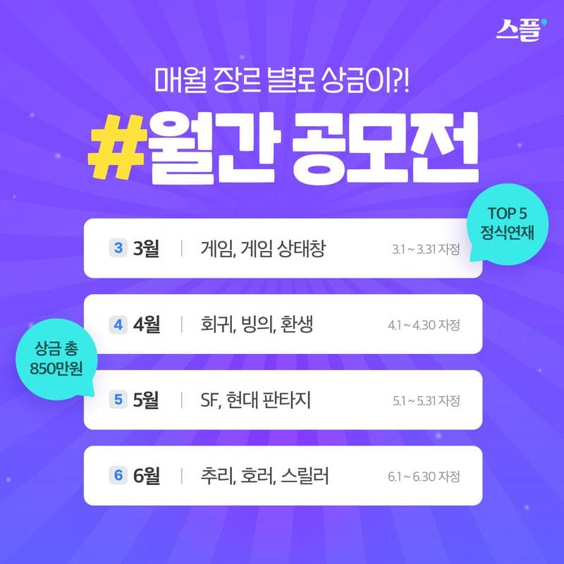 스플에서 3월부터 6월까지 미니 이벤트, ‘#월간_공모전’을 준비했습니다.