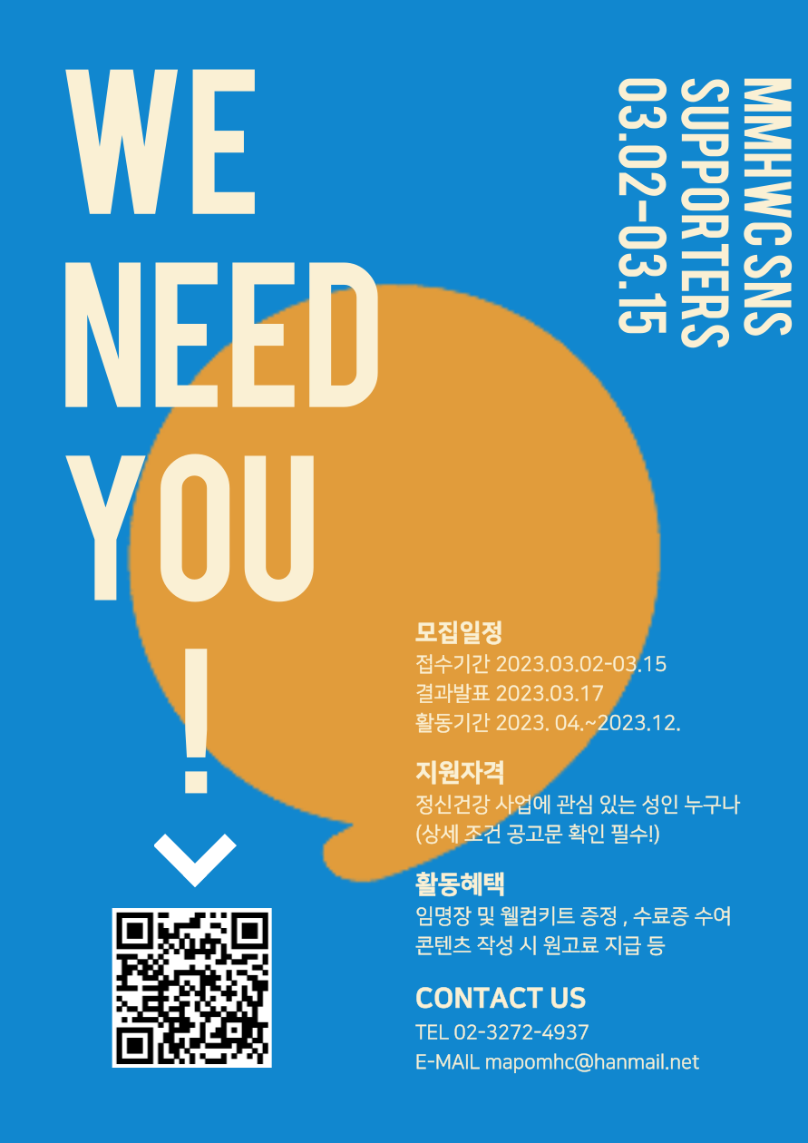 - 마포구정신건강복지센터 사업, 캠페인, 행사 등에 참여 및 현장 취재 가능한 자
