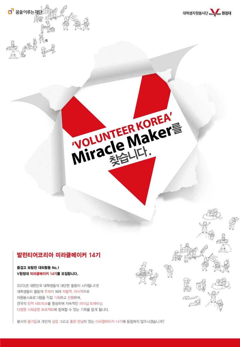 봉사의 즐거움과 개인의 성장 그리고 좋은 만남이 있는 미라클메이커 14기에 동참하지 않으시겠습니까?