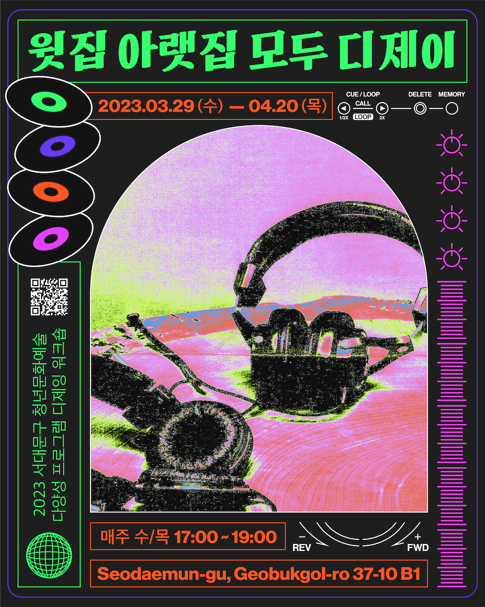 2023 서대문구 청년문화예술 다양성 프로그램 <디제잉 워크숍 : 아랫집윗집 모두 디제이> 참가자를 모집합니다. 디제잉이 처음이든 경험이 있든 관심이 있다면, 그리고 '디제잉 멘토링'을 통해 음악과 플레이리스트로 자신을 표현해보고자 한다면 망설이지 말고 지원하세요🔥