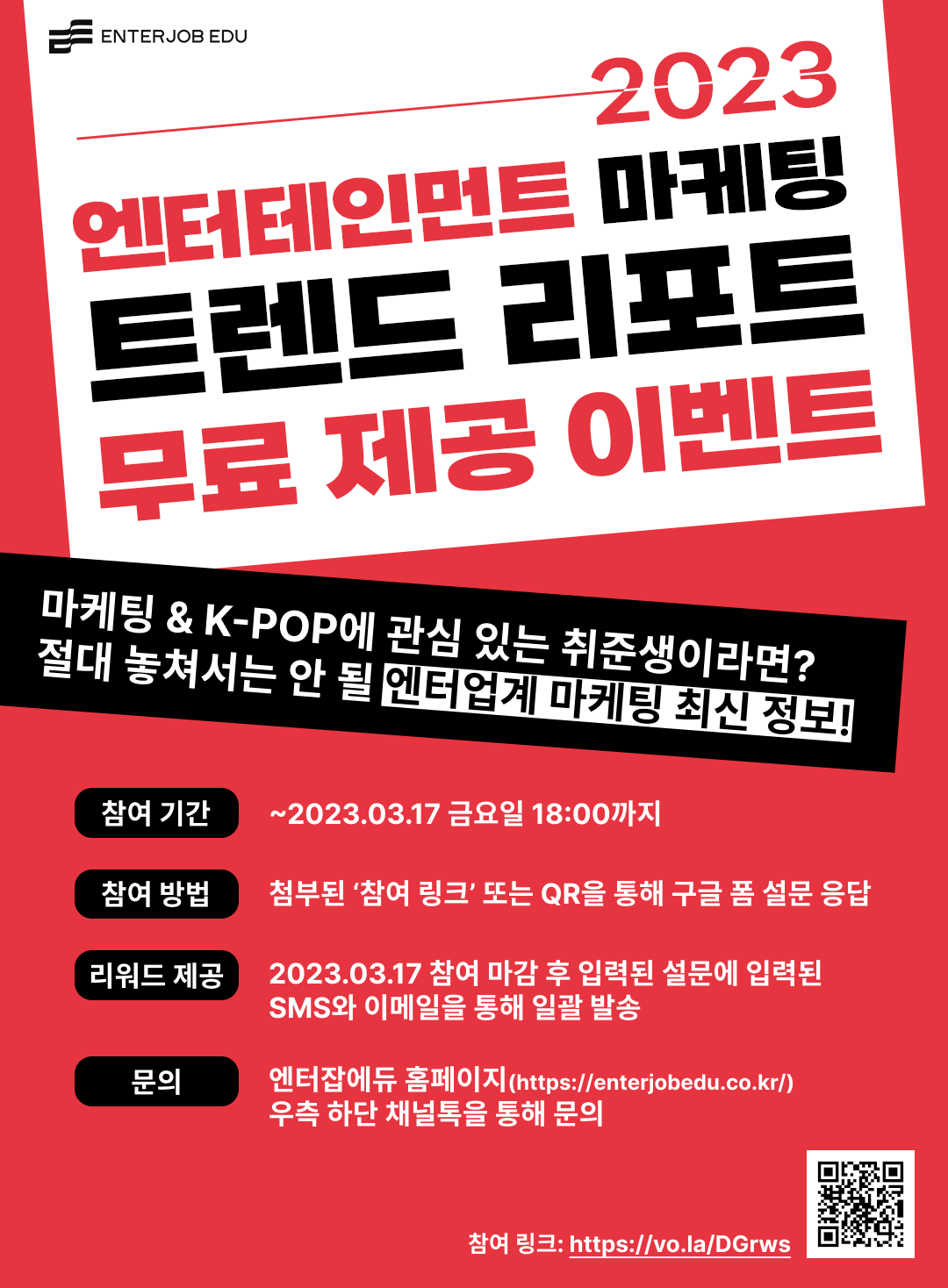 ✒ 문의 - 기입된 정보 확인 등 모든 문의는 아래 링크로 부탁드립니다. https://enterjobedu.channel.io/ 🚨자료 배포 일정🚨 1차 배포 : 3/17(금) 2차 배포 : 3/20(월)