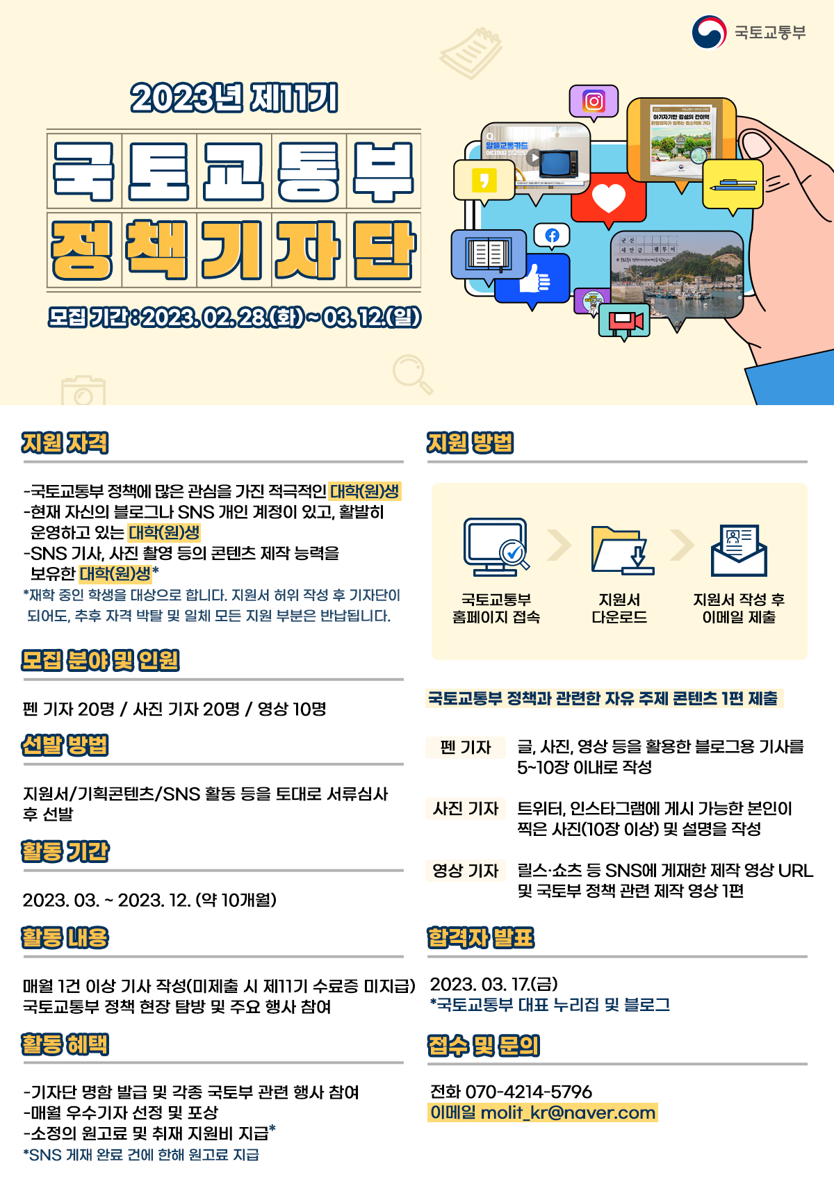 - 기자단 명함 발급 및 각종 국토부 관련 행사 참여