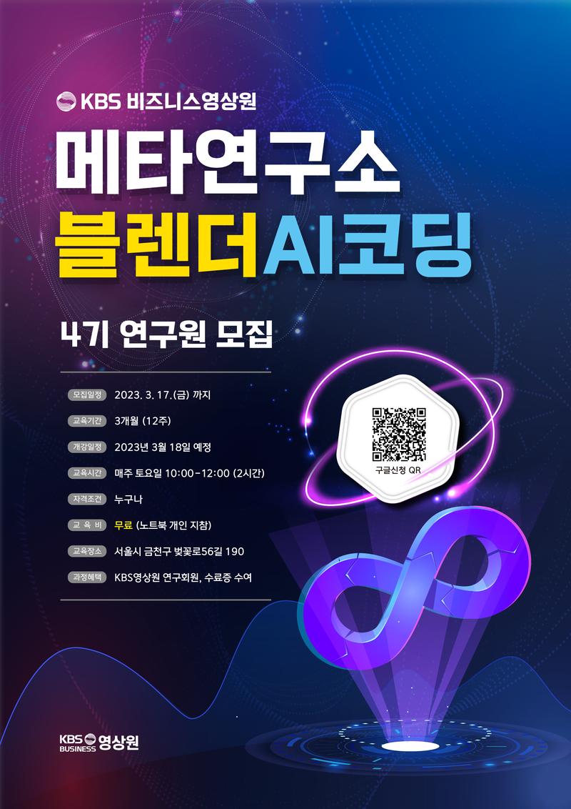 ■ 주제 KBS비즈니스영상원 주최, 메타연구소 블렌더AI코딩 초급과정 모집