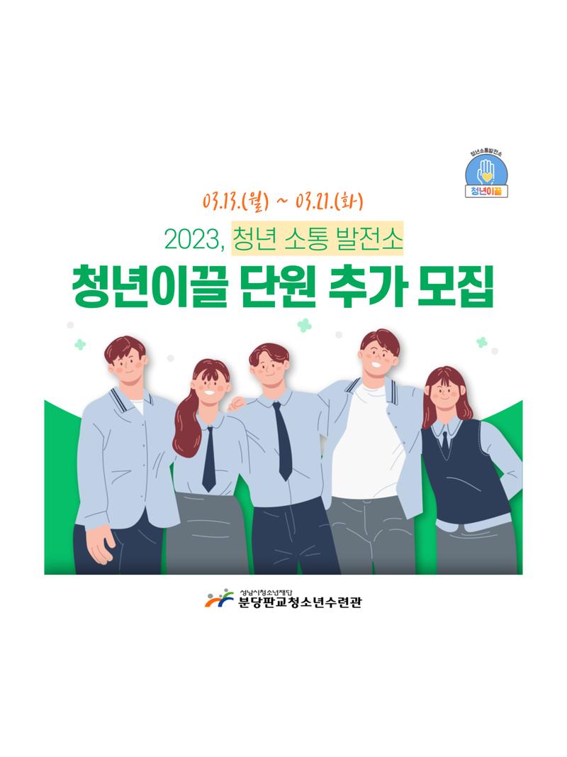 안녕하세요:) 분당판교청소년수련관 청년소통발전소 청년이끌입니다