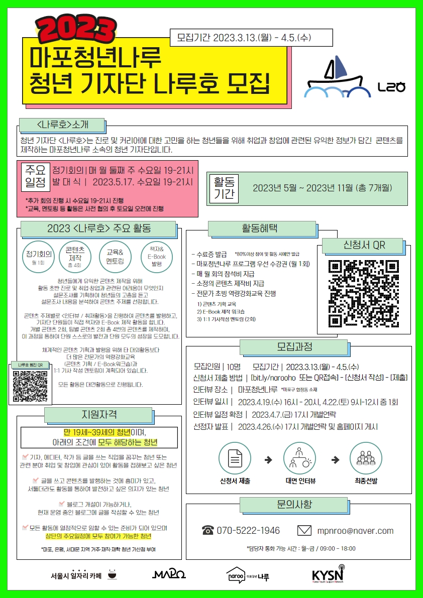 [2023년 마포청년나루 청년 기자단 '나루호' 신규단원 모집]