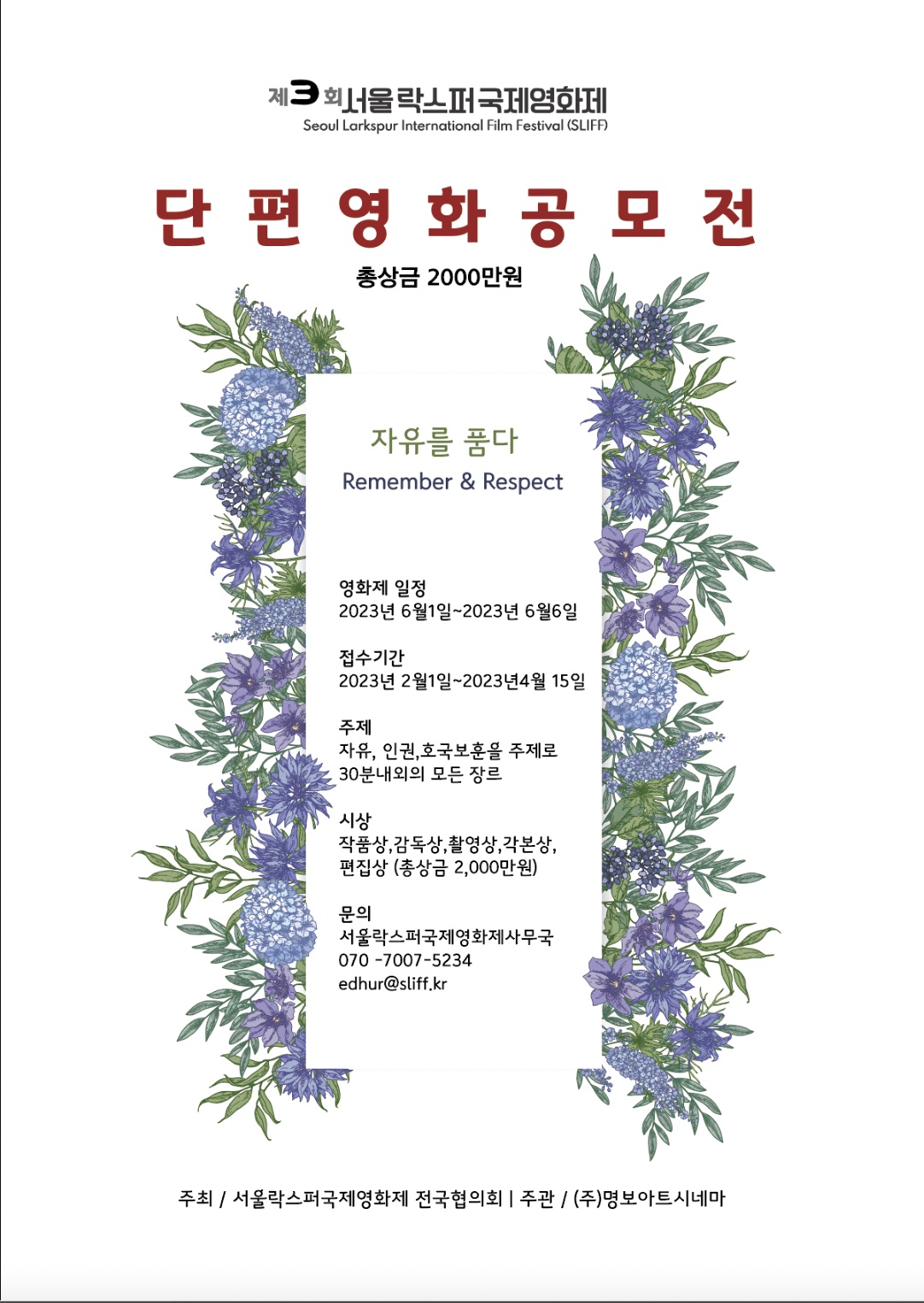 ‘자유·정의’를 꽃말로 하는 락스퍼(참제비꽃)를 상징으로 하는 국제인권영화제 ‘서울락스퍼국제영화제’가 단편영화제를 공모합니다.