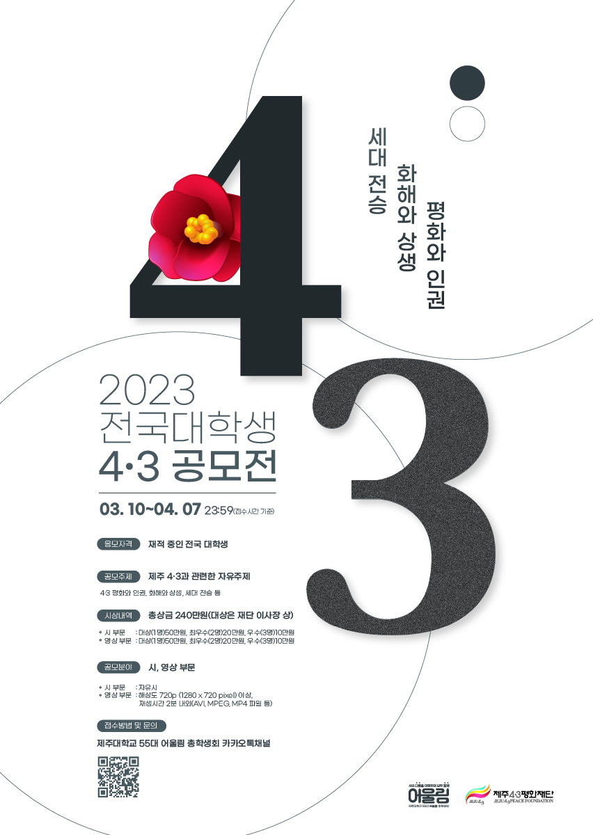 수상작은 제주대학교 55대 어울림 총학생회 및 4·3평화 재단 공익 적인 목적으로 별도