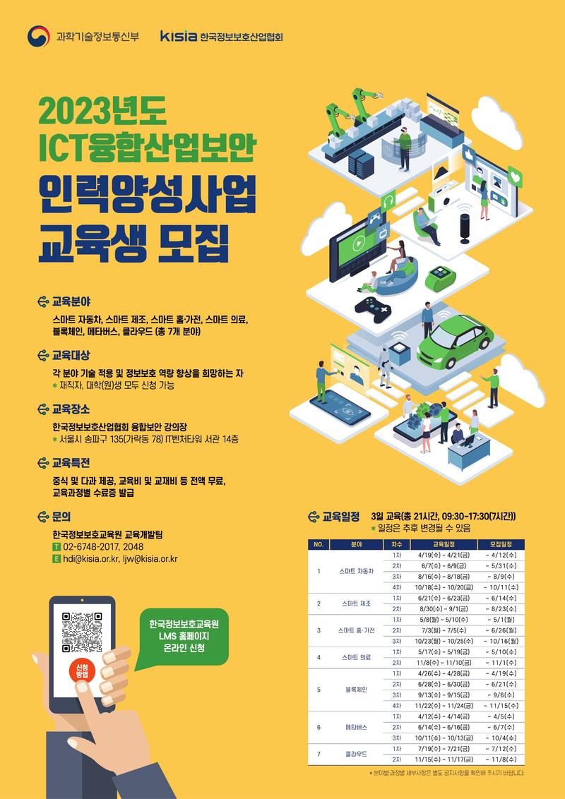 [KISIA] 2023년도 ICT융합산업보안 인력양성사업 교육생 모집