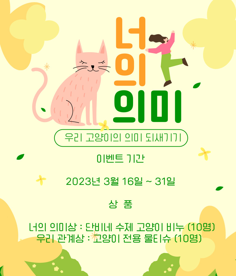 🎀 상 품 🎀 🌸 너의 의미상 : 단비네 고양이 턱드름 전용 수제비누 (10명) 🍀 우리 관계상 : 고양이 전용 물티슈 (10명)