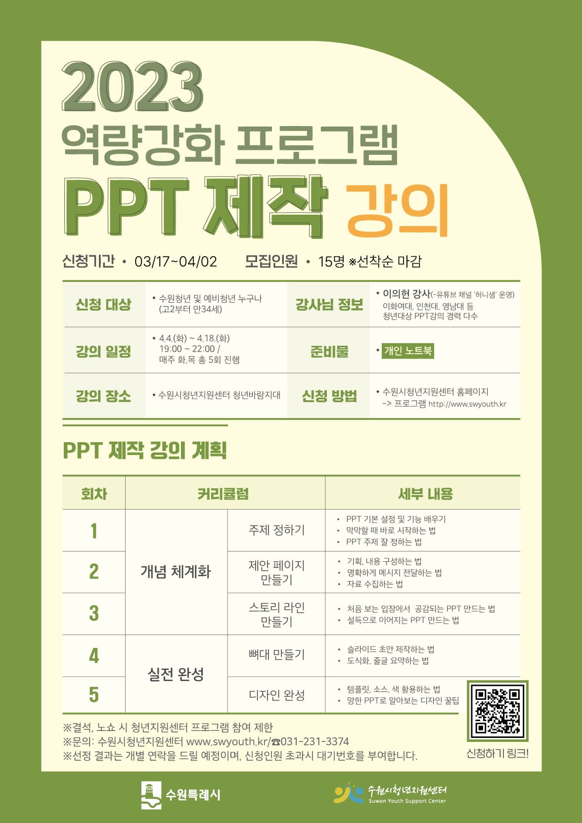 ✏️ 강의장소: 수원시청년지원센터 청년바람지대 3층