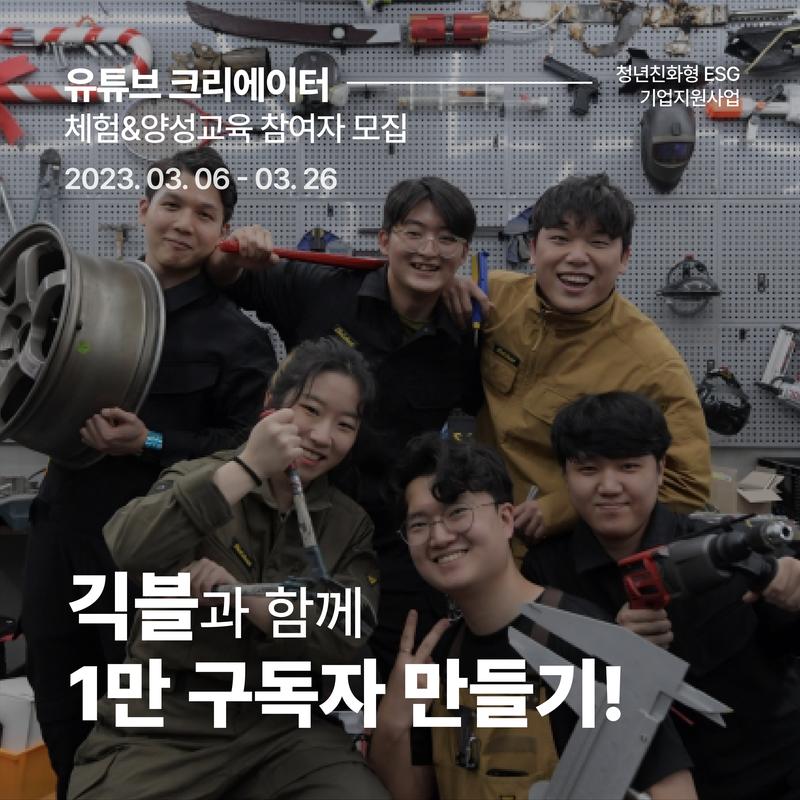 - 교육목표 : 103만 유튜버 긱블과 함께 본격적인 유튜브 크리에이터로 거듭나봅시다. 유튜브 세계\, 여전히 블루오션인가에 대한 중요한 질문을 시작으로 아이디어 기획\, 영상 편집 관련 실습\, 콘텐츠 제작\, 발표회 등 크리에이터 역량 강화와 다양한 실무 경험을 해볼 수 있어요!
