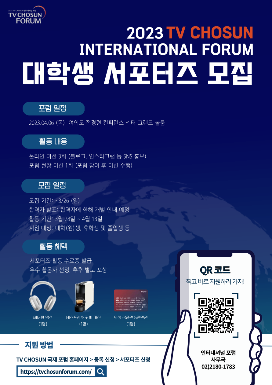 '2023 TV CHOSUN 국제포럼' 대학생 서포터즈 모집**