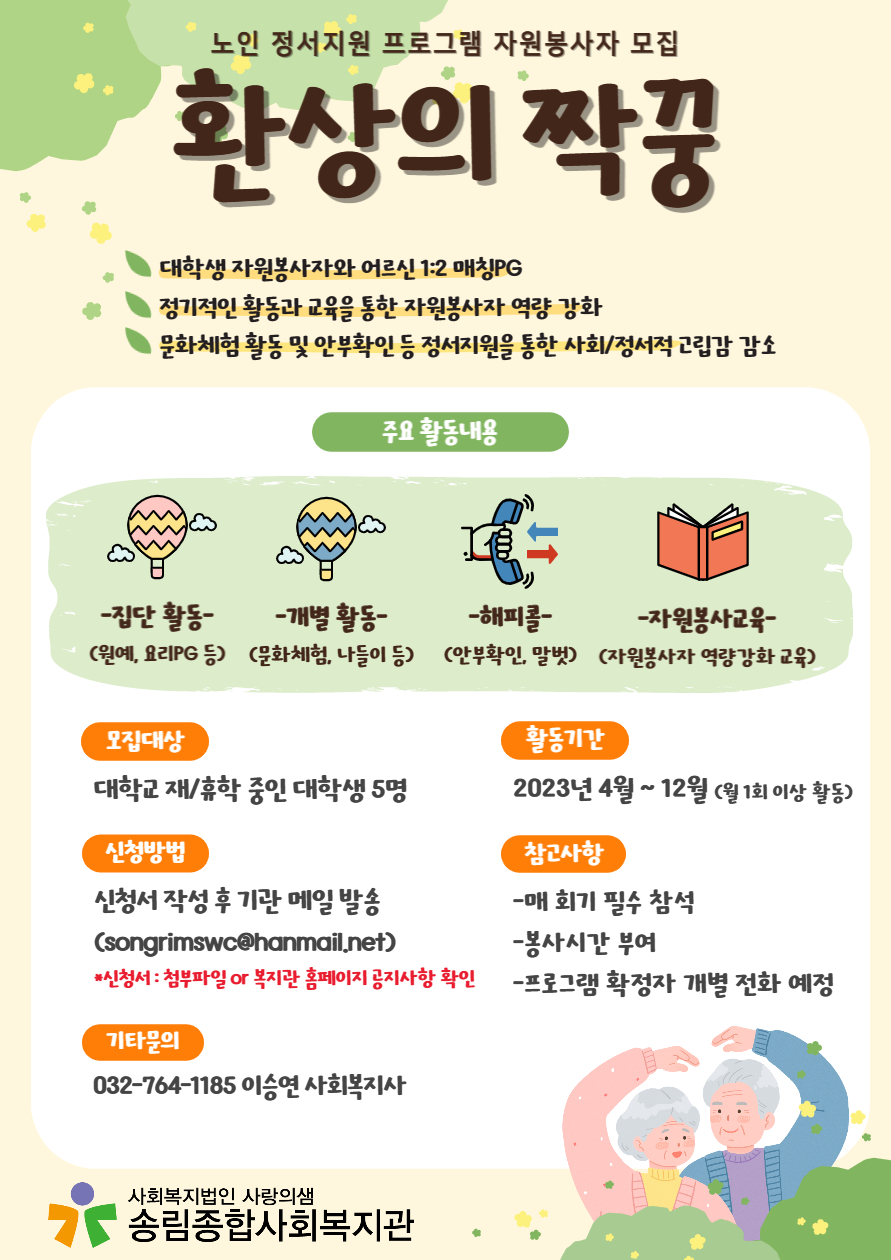 [노인정서지원 프로그램 '환상의 짝꿍'참여자 모집 안내]