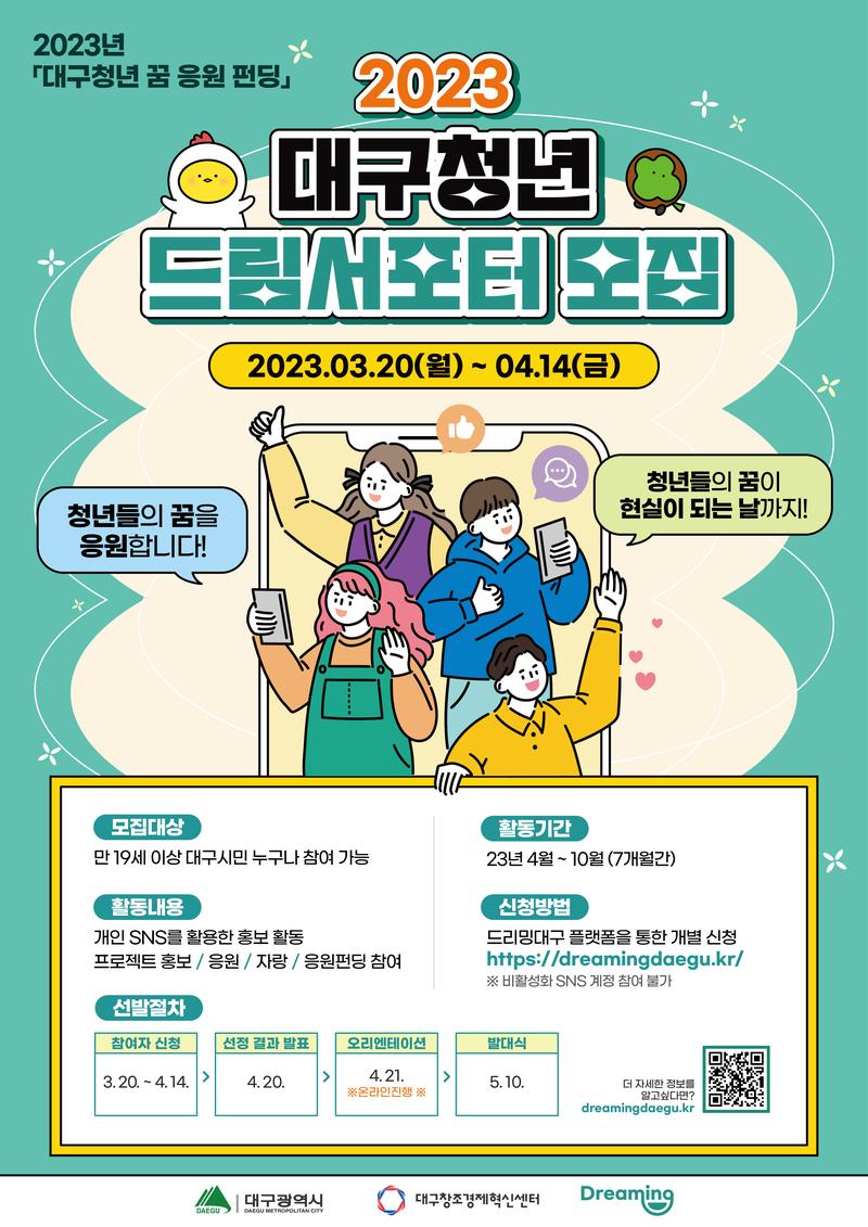 2023 대구청년 꿈꾸는 대로 응원펀딩, 드리밍 대구 드림서포터 모집 공고