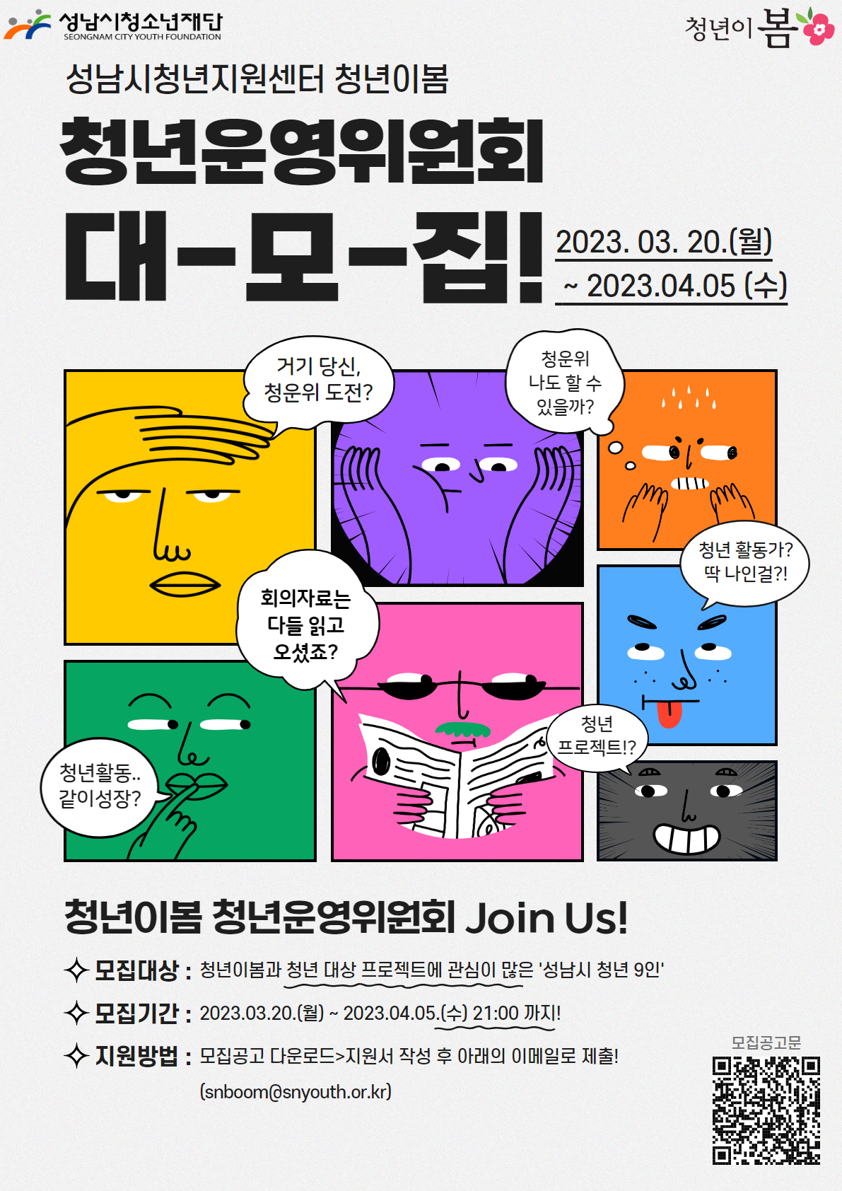 "2023년도 청년이봄 청년운영위원회 대-모-집!" 청년이봄에서 활동하며 함께 성장하고 싶은 청년들은 지금 바로 커몬커몬\~!